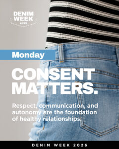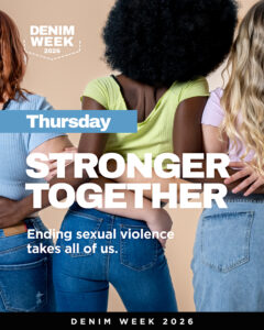 Denim Week continues, and today is all about community. Real change happens when we come together. Preventing sexual violence is not one person’s responsibility. Advocates, educators, leaders, friends, and neighbors all play a role in creating spaces where people feel safe, respected, and supported.