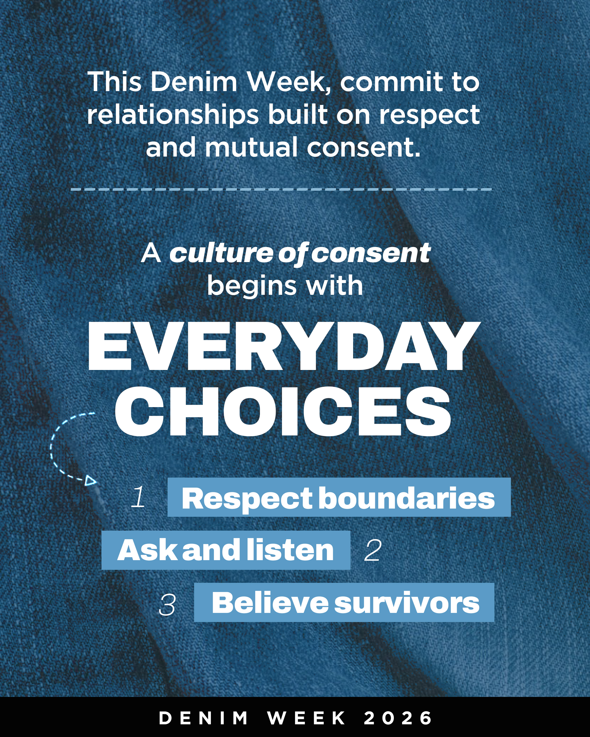 Denim Week 2026 is a national campaign led by Respect Together to build awareness around Denim Day and strengthen our collective commitment to ending sexual violence.