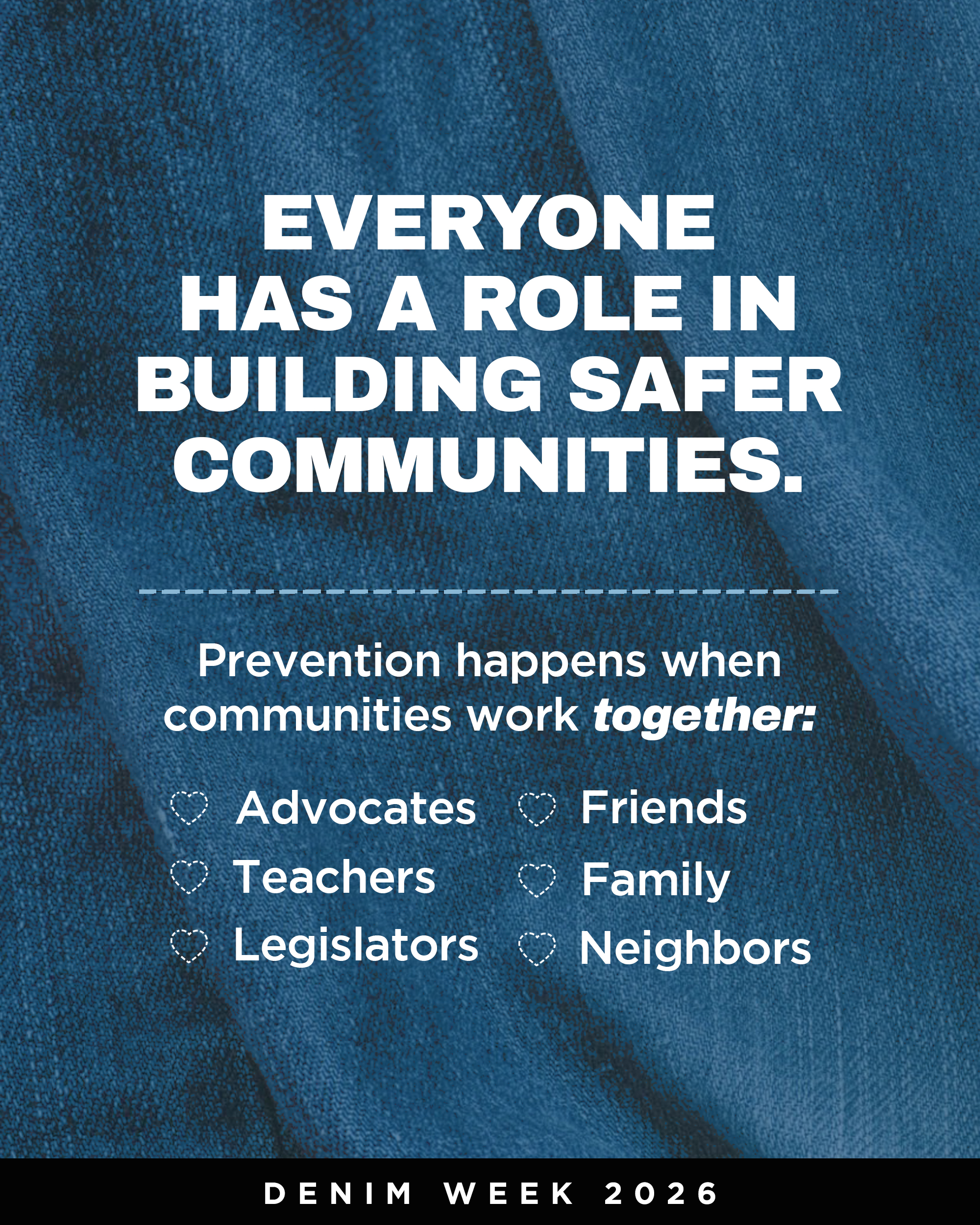 Today, we’re kicking off Denim Week 2026! All week long, we’re coming together to uplift survivors, build stronger communities, and take action together.